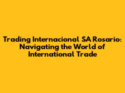 Welcome, folks! Today, we're diving deep into the world of Trading Internacional SA Rosario, a key player in the exciting realm of international trade. If you're looking to explore the ins and outs of exporting, importing, and everything in between, you've come to the right place. We'll break down what makes Trading Internacional SA Rosario tick, its role in the market, and how it can be a valuable partner for your business ventures. Buckle up, because we're about to embark on a journey through the vibrant landscape of global commerce!